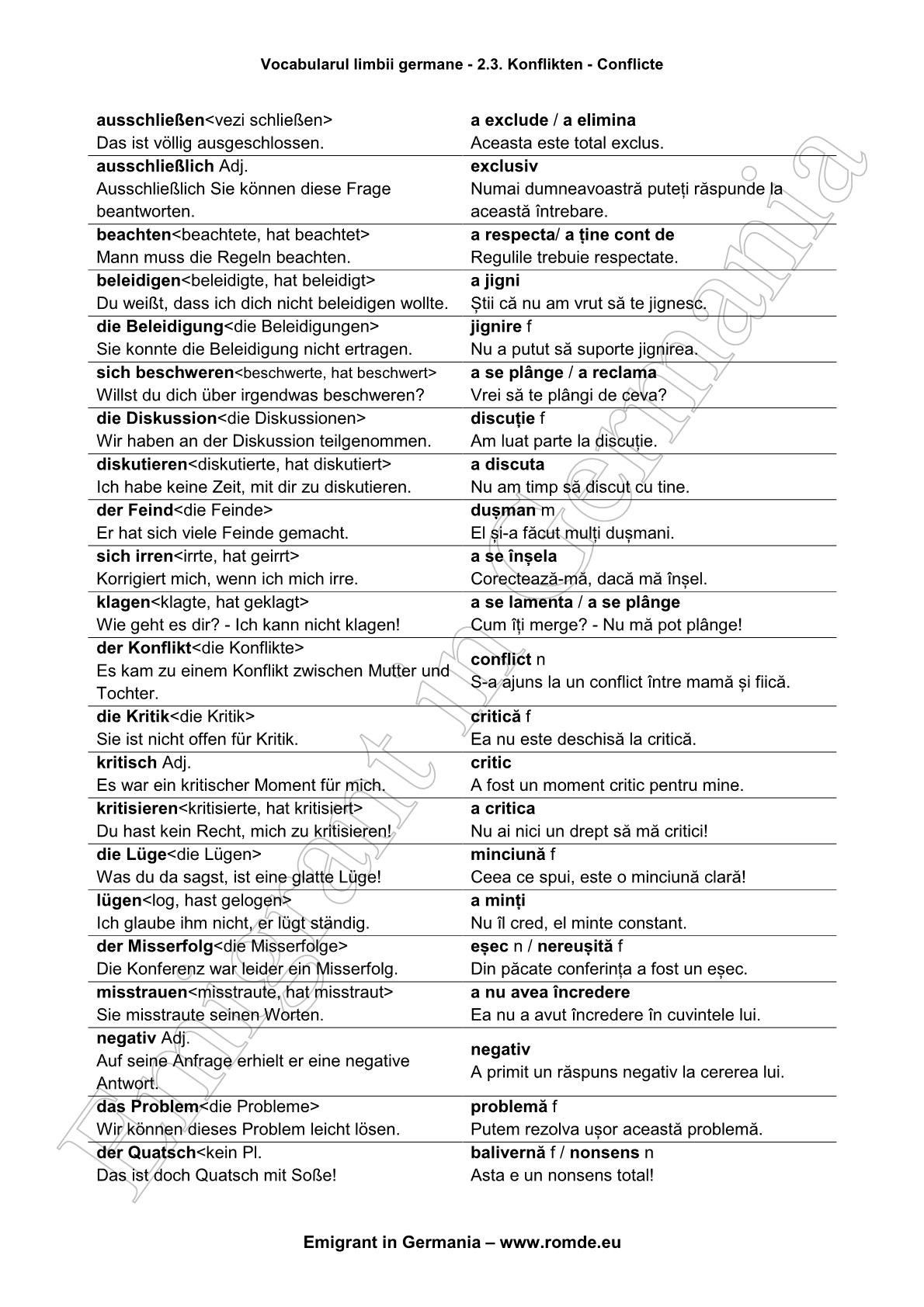 Vocabularul limbii germane - 23 Konflikten - Conflicte-I |