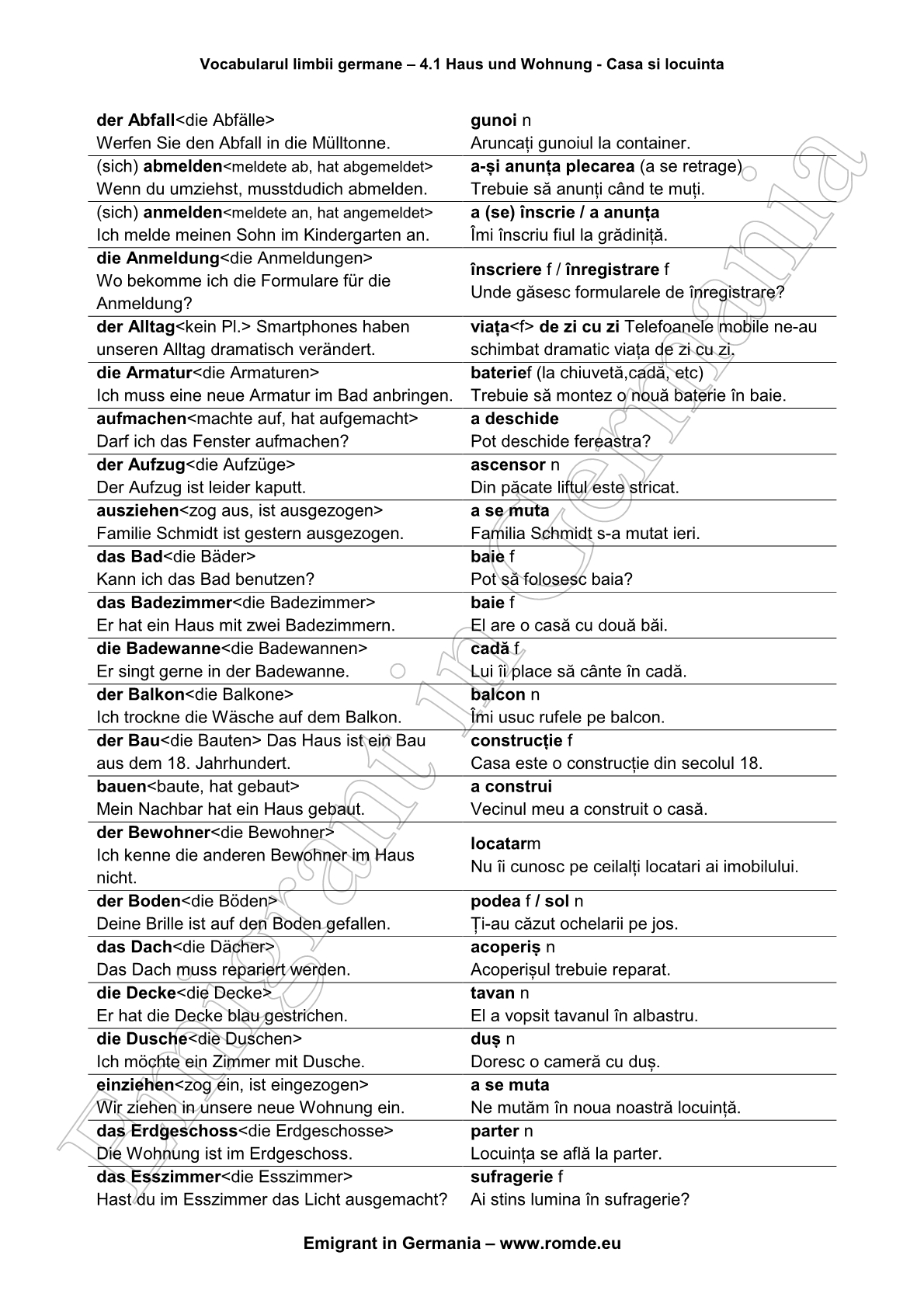 Vocabularul limbii germane - 411 Haus und Wohnung - Casa si locuinta |